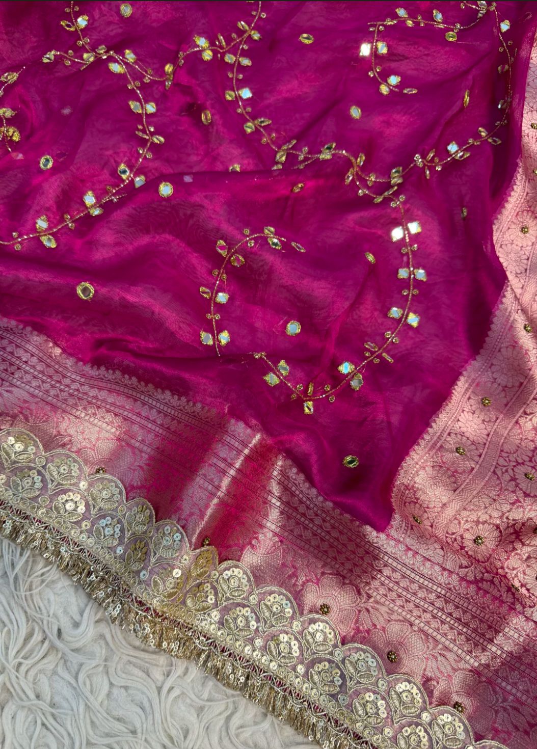 Designed for weddings, festive celebrations, and statement occasions, this saree is a perfect blend of heritage artistry and modern luxury.
